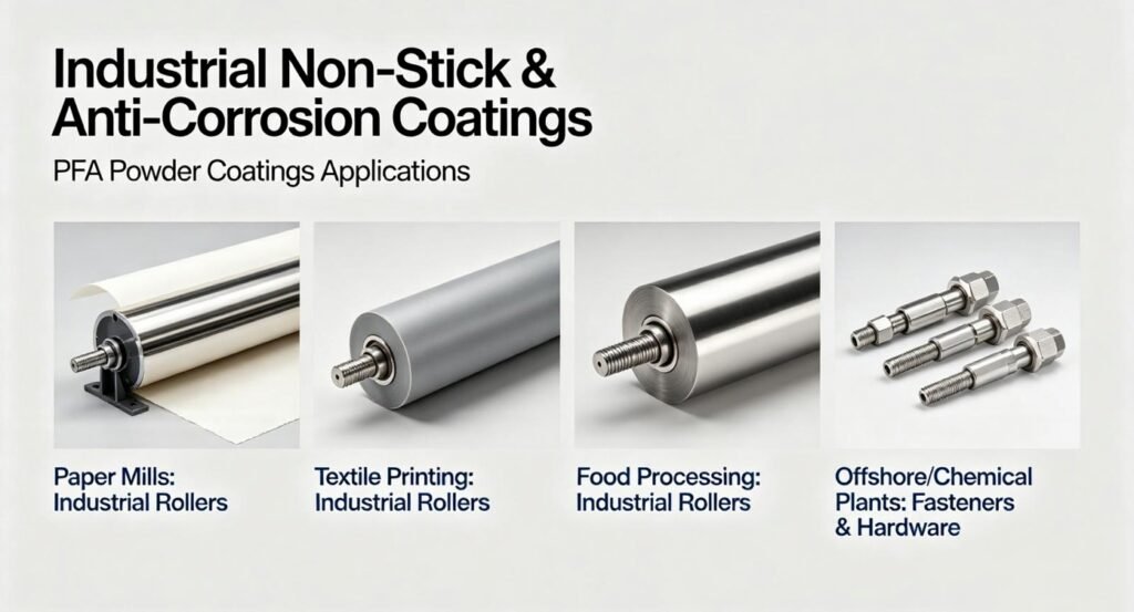 • Fasteners & Hardware: Bolts and nuts used in offshore or chemical plants are coated with PFA to prevent “seizing” and salt-water corrosion.